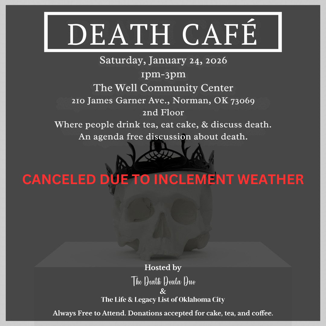 CANCELED DUE TO INCLEMENT WEATHER It looks like we are going to have to reschedule this coming Saturday's Death Cafe due to inclement weather. Please stay tuned for the new date and time. Unfortunately, due to limited availability, the next one will probably be in April. We appreciate your understanding! At a Death Café, people, […]